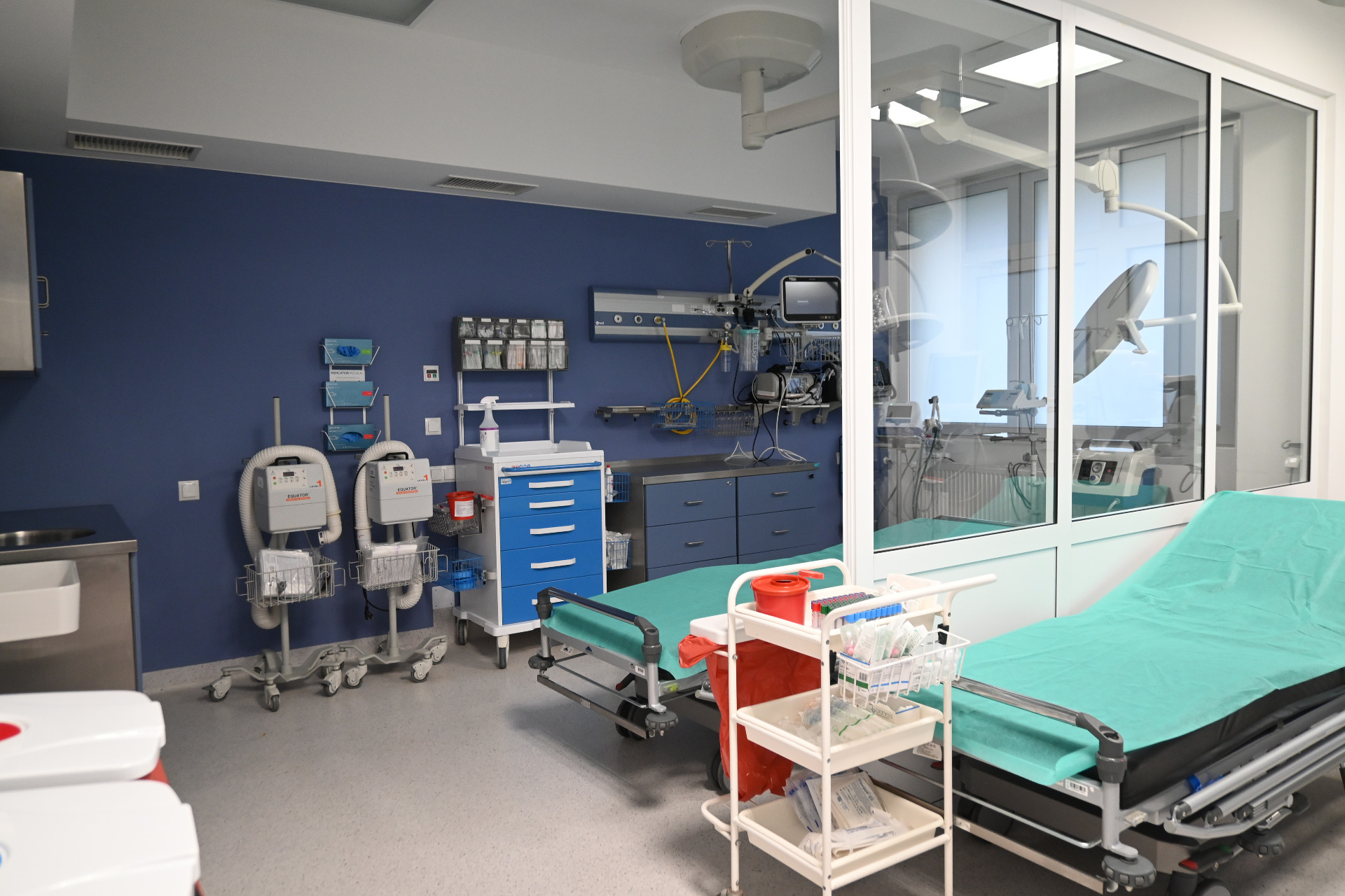 Głównym celem modernizacji było znaczące podniesienie dostępności i jakości świadczeń medycznych w Szpitalnym Oddziale Ratunkowym. Zakładano, aby każdy pacjent, niezależnie od godziny przyjęcia czy stanu zdrowia, otrzymywał opiekę sprawną, szybką i bezpieczną. Wykonawcą prac była firma WM KONTRAPUNKT Sp. z o.o. z siedzibą w Warszawie, która odpowiadała za kompleksową realizację zadania. W ramach modernizacji wykonano prace projektowe, a następnie przeprowadzono kompleksową przebudowę i zmianę funkcjonalności wszystkich pomieszczeń SOR-u. Przebudowa dotyczyła ścian działowych, stref komunikacyjnych, realizacji wewnętrznej stolarki drzwiowej, sufitów podwieszanych oraz posadzek z uwzględnieniem specjalistycznych warstw wykończeniowych, a także przygotowania otworów oraz przekuć pod nową infrastrukturę techniczną. Dokonano kompletnej przebudowy instalacji wodnej, ppoż., kanalizacji sanitarnej, wentylacji mechanicznej i klimatyzacji, centralnego ogrzewania, instalacji gazów medycznych, instalacji elektrycznej i teletechnicznej. Wszystkie pomieszczenia zostały wyposażone w niezbędny sprzęt, aparaturę medyczną, jak również meble szpitalne. Całkowicie przebudowano funkcjonalnie wszystkie obszary, w tym rejestrację, segregację medyczną oraz obszar przyjęć, a utworzenie dwóch gabinetów do triażu pacjentów umożliwia szybką identyfikację stanu zdrowia oraz natychmiastowe podjęcie odpowiednich działań. Skrócenie czasu oczekiwania na diagnostykę i decyzje terapeutyczne stanowi realny wzrost komfortu i bezpieczeństwa dla każdego pacjenta. W obszarze obserwacji liczba łóżek została zwiększona z 4 do 9. Osiem stanowisk wyposażonych w monitory rejestrujące stan pacjenta znajduje się w funkcjonalnej sali obserwacyjnej, natomiast jedno łóżko przeznaczone jest do intensywnej terapii i zostało w pełni wyposażone w aparaturę umożliwiającą prowadzenie czynności podtrzymujących życie. Intensywne działania ratownicze są możliwe dzięki doposażeniu oddziału w nowoczesny sprzęt, taki jak aparat USG, respirator stacjonarny i transportowy, aparat do znieczulenia, przyłóżkowy aparat RTG, defibrylator, aparaty EKG, aparat KTG oraz detektor tętna płodu dla pacjentek w ciąży, a także kardiomonitory. Utworzono również nową salę zabiegową, która jest w pełni przygotowana do wykonywania zabiegów chirurgicznych, w tym u pacjentów z urazami powypadkowymi, co znacząco zwiększa możliwości ratowania życia i zdrowia. Dwie nowoczesne izolatki umożliwiają bezpieczną opiekę nad pacjentami wymagającymi izolacji z powodu chorób zakaźnych, co – jak pokazała pandemia COVID-19 – jest kluczowe dla funkcjonowania każdego szpitala.