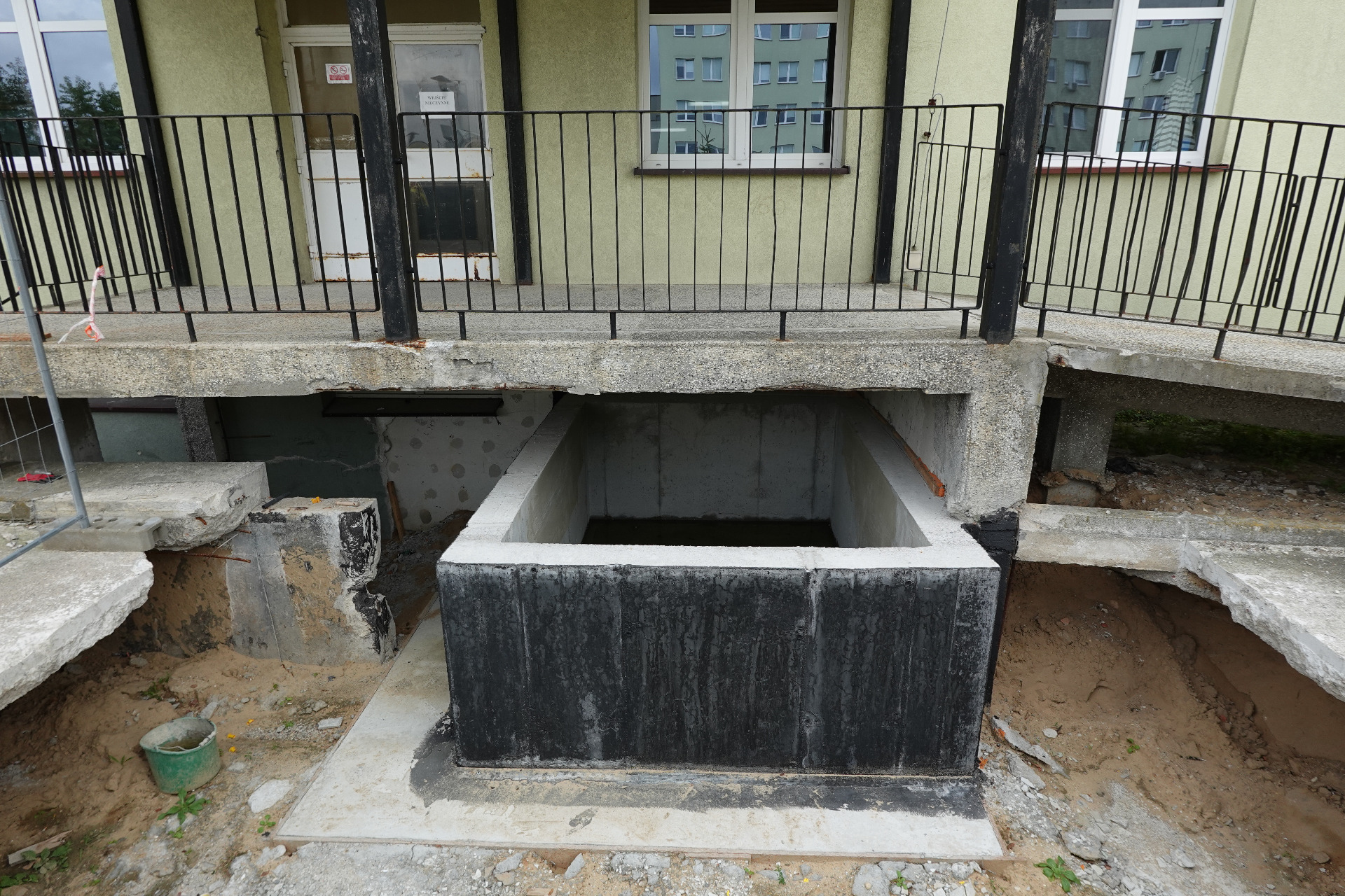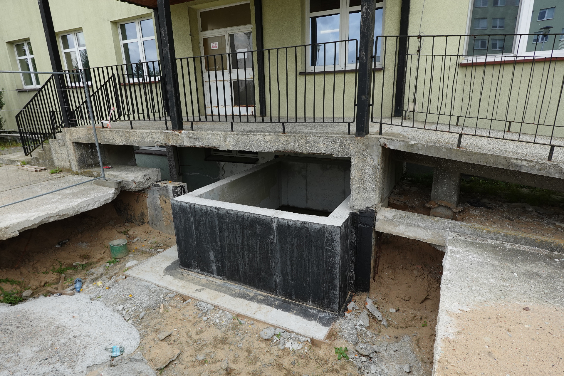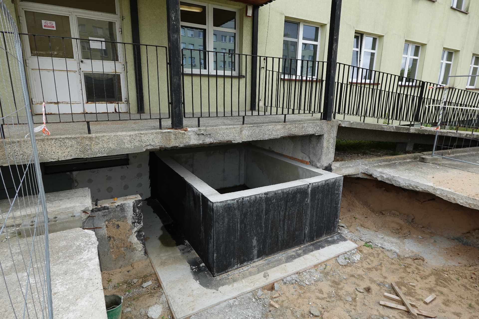 Drugim zadaniem była budowa dwóch wind osobowych w budynku B – etap I, realizowana jako pierwszy etap inwestycji ukierunkowanej na likwidację barier architektonicznych. W ramach tego etapu wykonano kompletną dokumentację projektową budowy dwóch wind zewnętrznych dla osób z niepełnosprawnościami oraz zrealizowano roboty budowlane związane z wykonaniem konstrukcji żelbetowych podszybia wind. Przygotowanie dokumentacji projektowej stanowi podstawę do realizacji kolejnych etapów inwestycji obejmujących montaż wind osobowych.